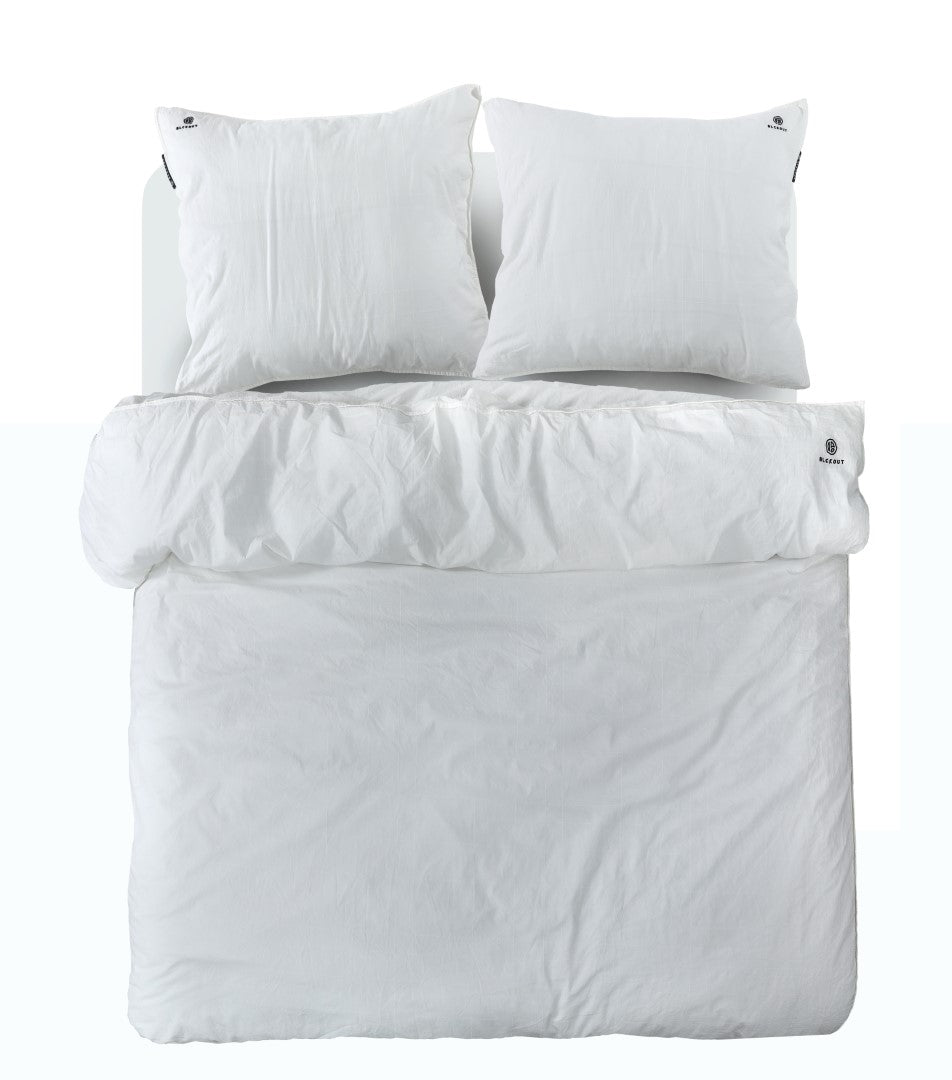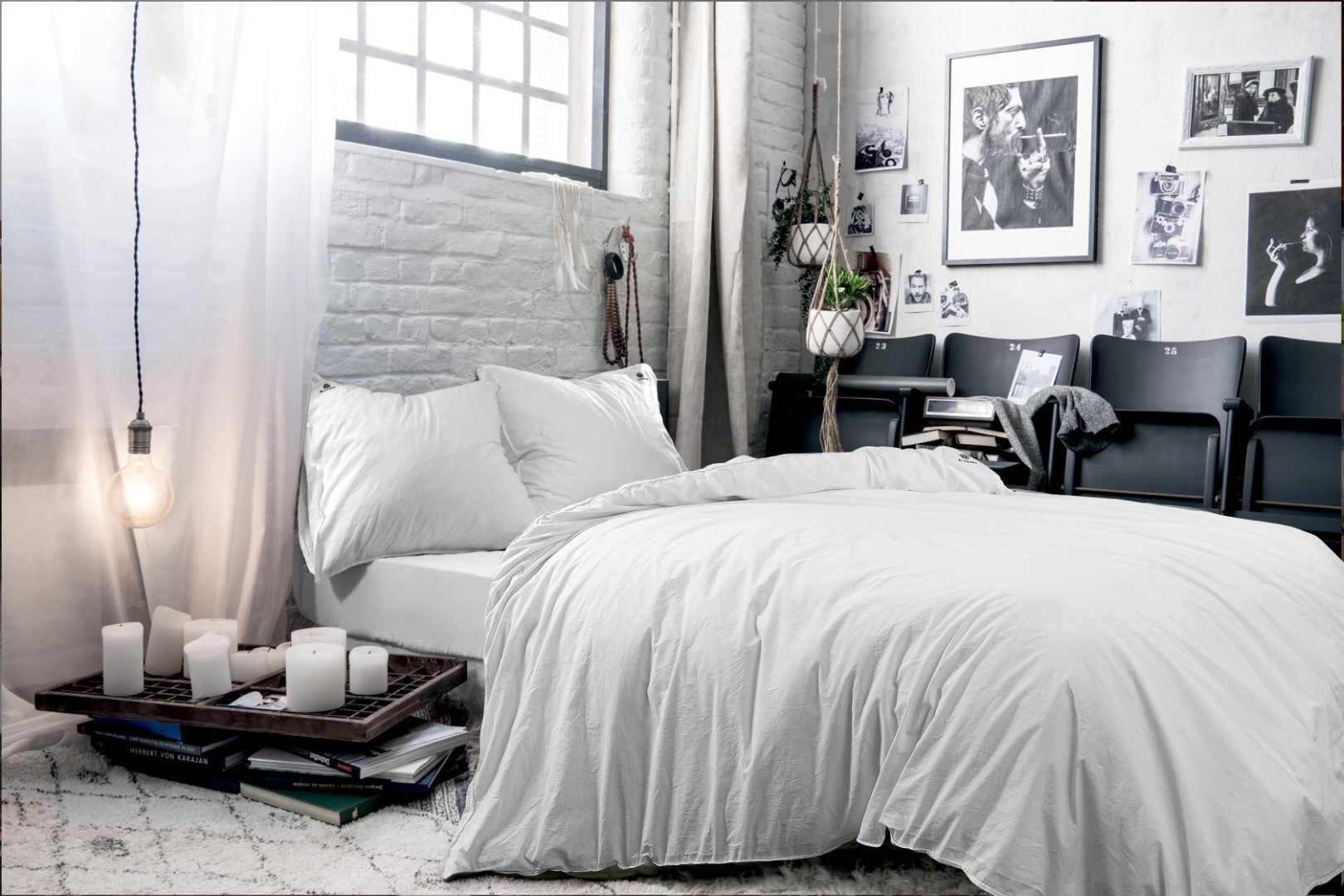 Een stoer en tijdloos dekbedovertrek. Het ingeweven blokpatroon en de afwerking met een jeansstitch geven samen een prachtig effect. De tijdloos witte kleur past in de meeste interieurs.
