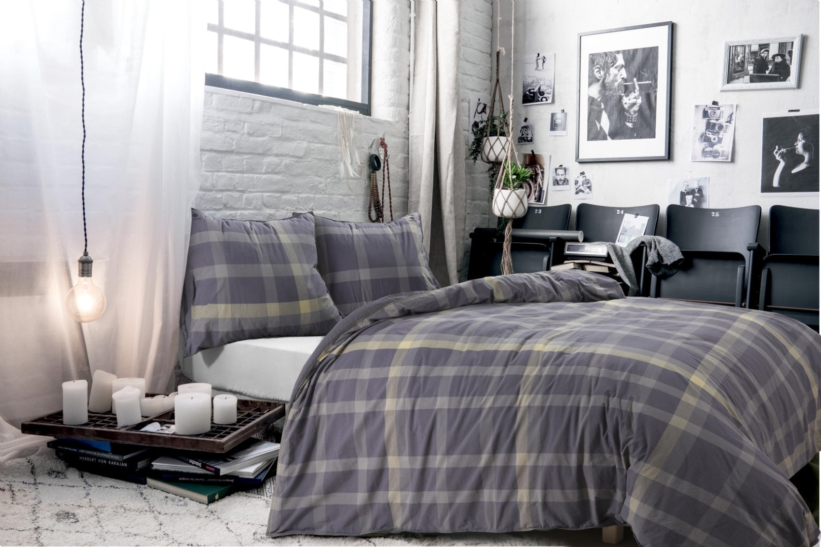 Een stoer en stijlvol dekbedovertrek met een schitterend blokpatroon in verschillende grijstinten met zachtgele accenten. Met dit dekbedovertrek geef je je slaapkamer echt een eigen gezicht.