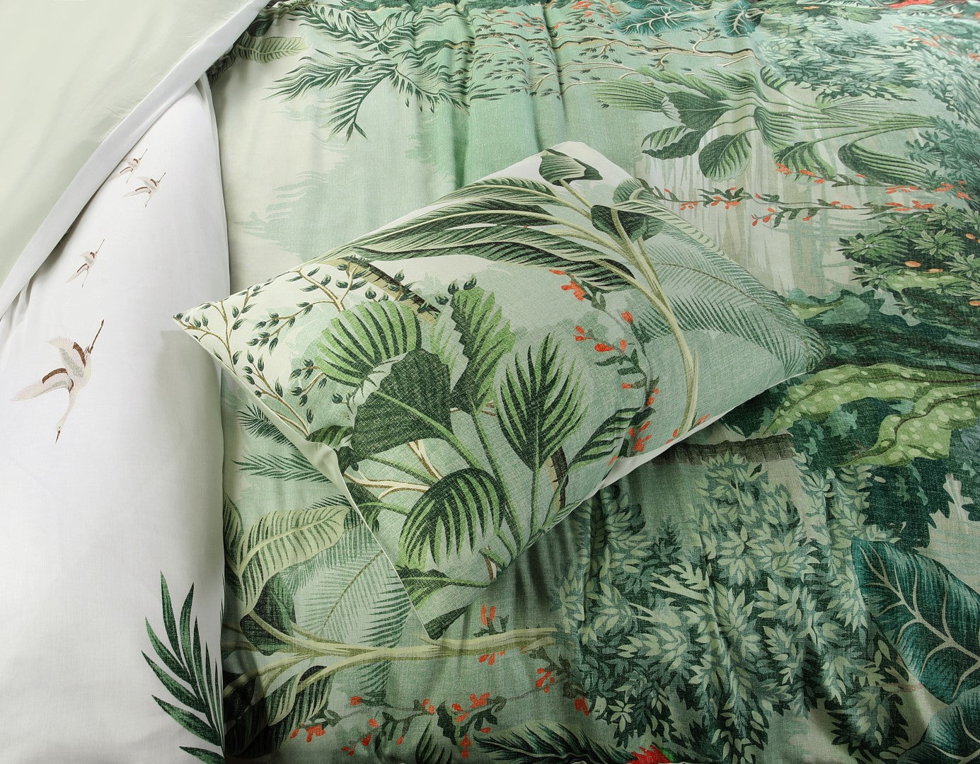 Laat je omarmen door de rust van de natuur met het Papillon Jungle dekbedovertrek. De botanische print in diepe groentinten brengt een gevoel van geborgenheid in je slaapkamer – alsof je onder de bladeren van een tropisch woud tot rust komt. Dit dessin nodigt uit tot vertraging en ontspanning, en vormt een zachte herinnering aan de schoonheid van eenvoud. De bijpassende kussenslopen zorgen voor een harmonieus geheel in je bedritueel.